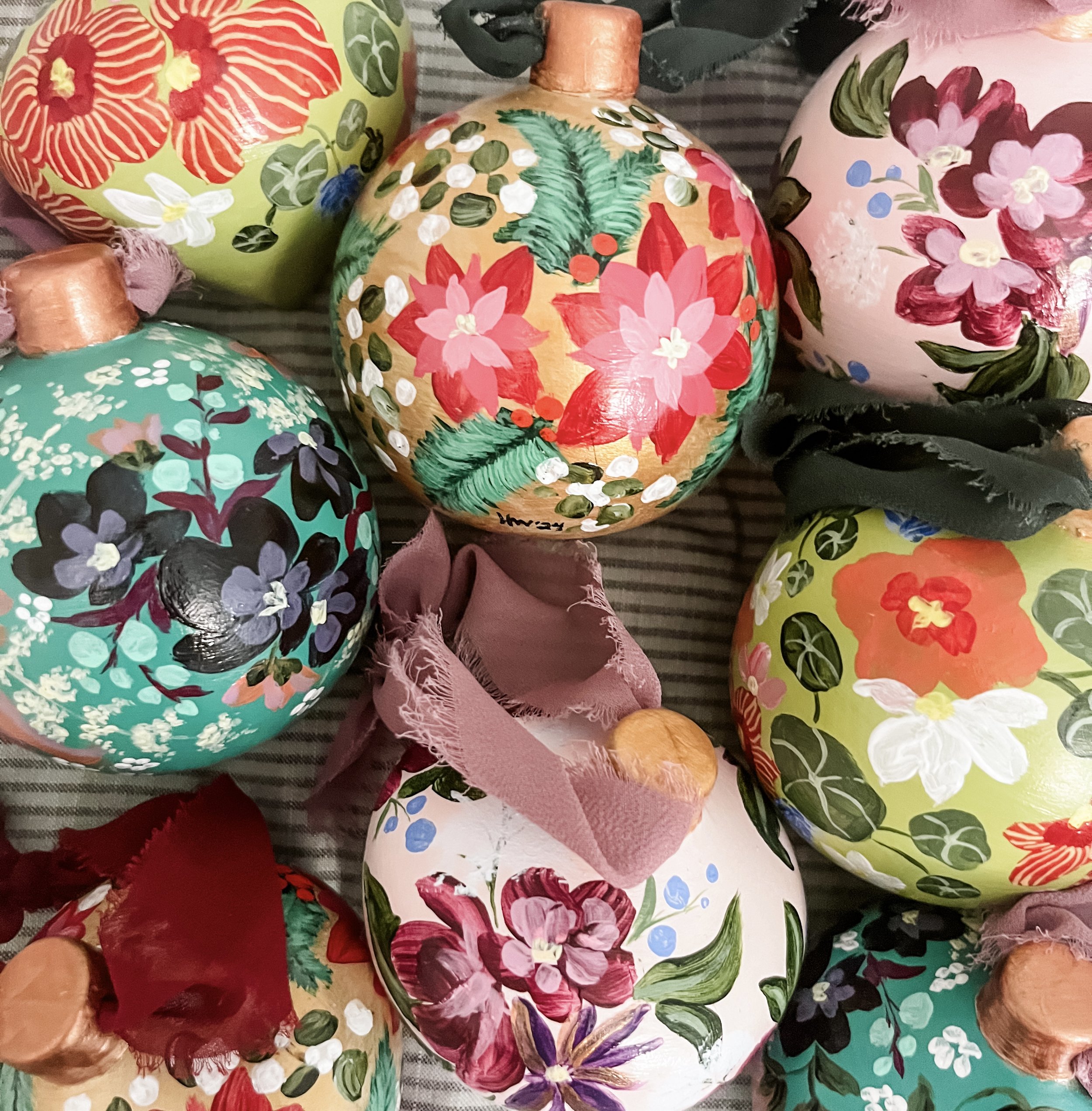 Stunning hand-painted ornaments that can brighten your Christmas tree or your home year round!
